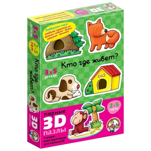 Набор пазлов Десятое королевство Парные 3D-пазлы Кто где живет? (01401)