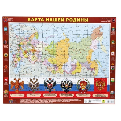 Рамка-вкладыш РУЗ Ко Карта нашей Родины (Пл45п), 63 дет.