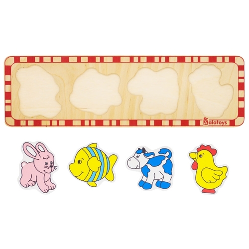 Рамка-вкладыш Alatoys Заяц, рыбка, корова, петух (ПЗЛ1002), 4 дет.