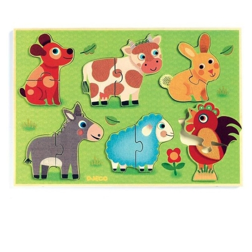 Рамка-вкладыш DJECO Животные на лугу (01259), 12 дет.