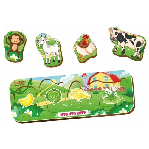 Рамка-вкладыш Woodland Кто что ест? (011901), 4 дет.