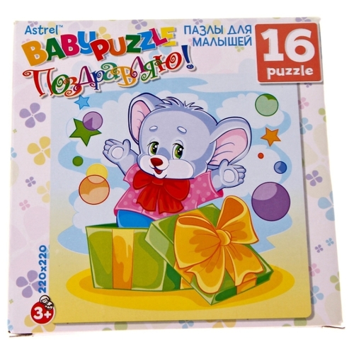 Пазл Origami Astrel Поздравляю! Мышонок с подарком (8902), 16 дет.