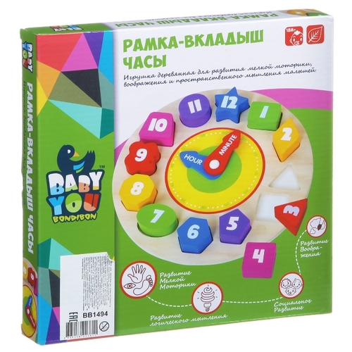 Рамка-вкладыш BONDIBON Baby You Часы (ВВ1494), 12 дет.
