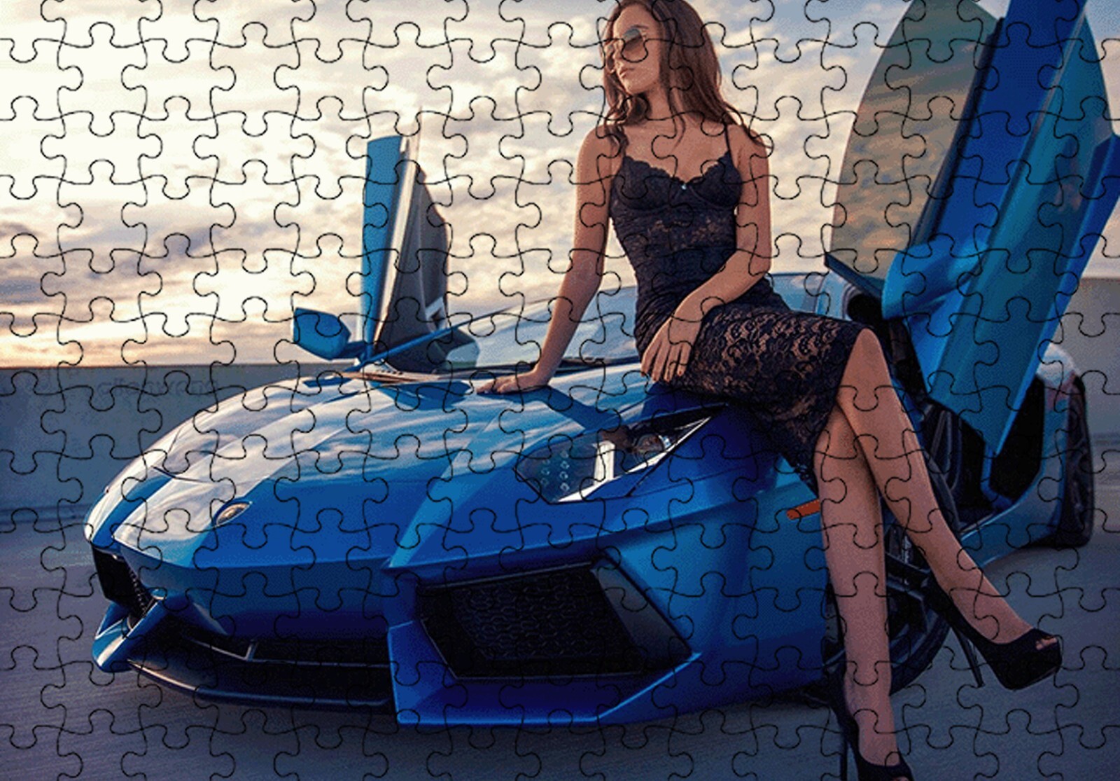 Пазл Картонный 29x20 см Машина девушка и спорткар спортивный автомобиль - 319