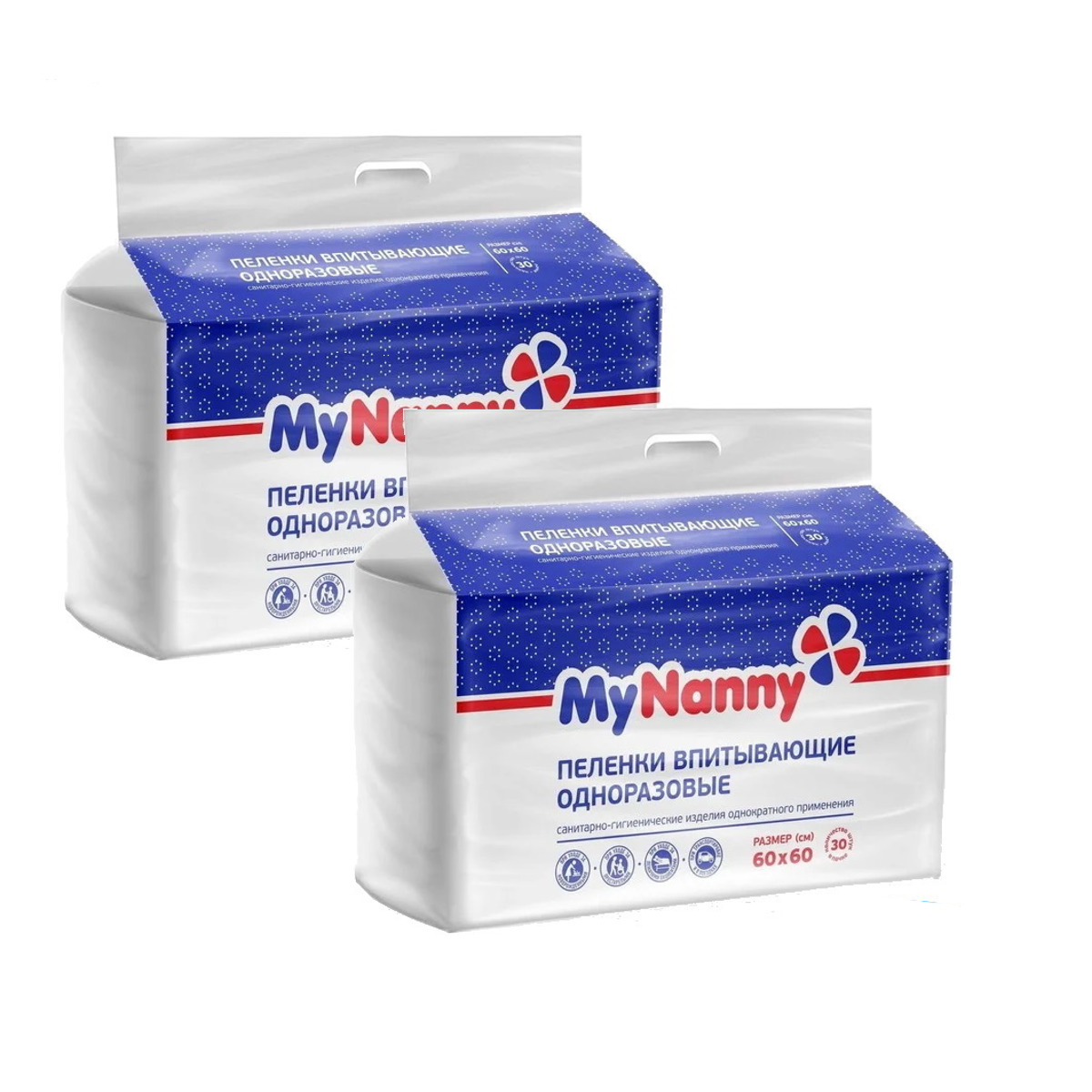 Пеленка текстильная 60 х 60 см, Нетканое волокно, "My Nanny" 30 шт x 2 упаковок