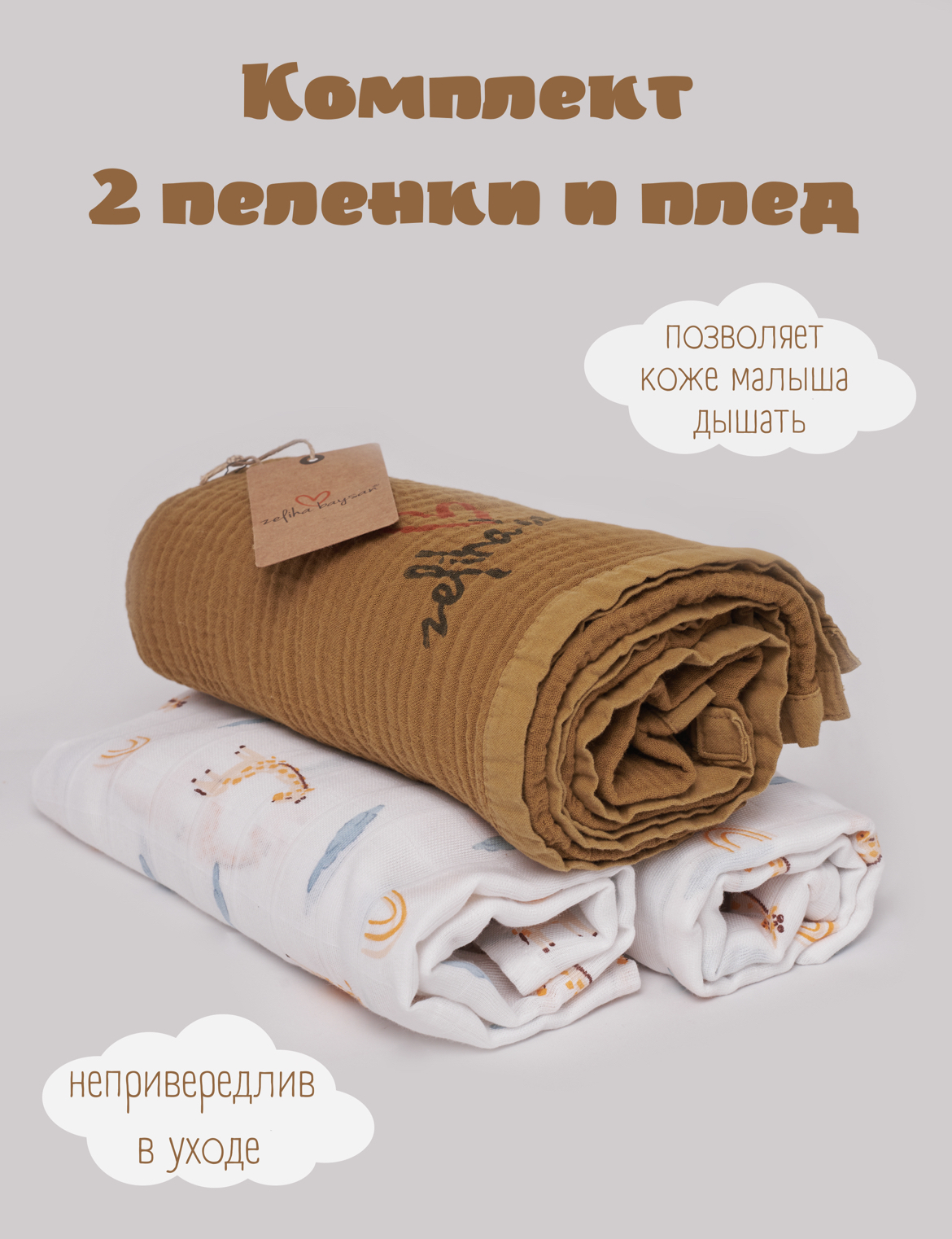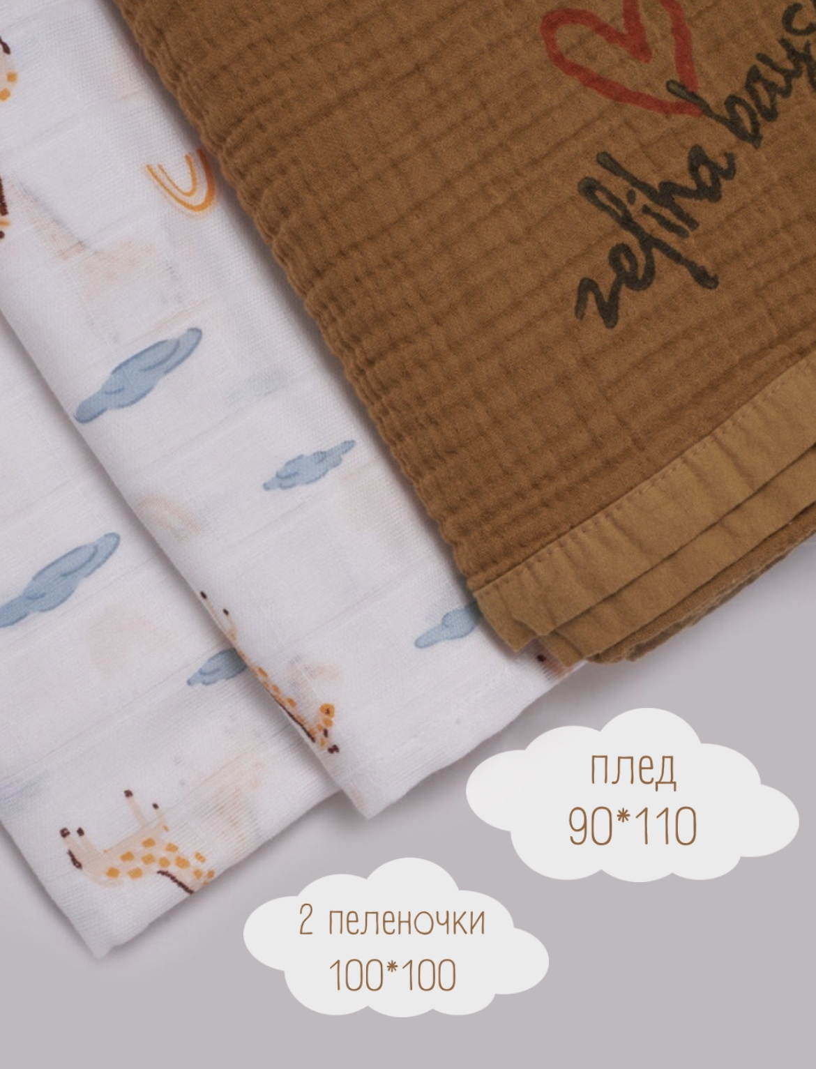 Пеленка текстильная 100 х 100 см, Хлопок, Муслин, 3 шт