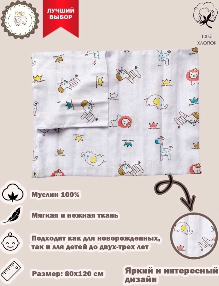 Пеленка текстильная 75 х 120 см, Муслин, 1 шт