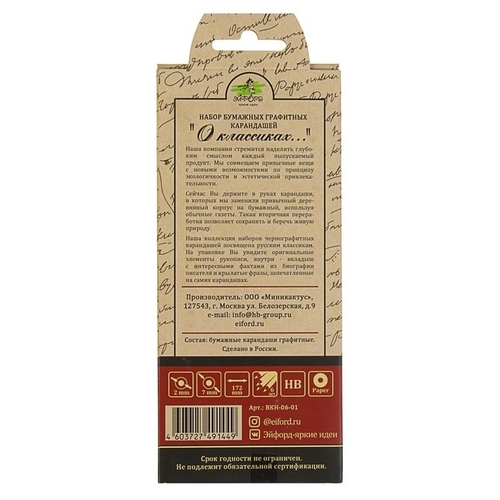 Эйфорд Набор чернографитных карандашей О классиках…Достоевский 6 шт (BKH-06-01)