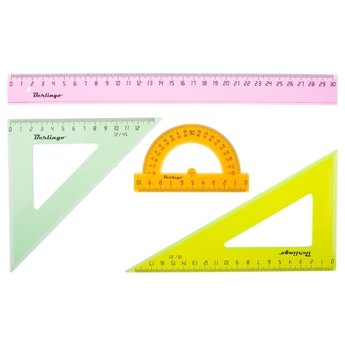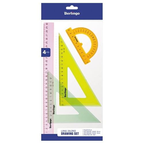 Berlingo Набор чертежный большой прозрачный флуоресцентный 4 предмета (RS_00604)