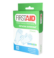 Перчатки латексные FIRST AID размер L, 10 шт нестерильные опудренные