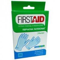 Перчатки FIRST AID Латексные Нестерильные Опудренные Смотровые