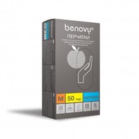 Перчатки Benovy нитриловые, голубые 4,4г 50 пар (M)