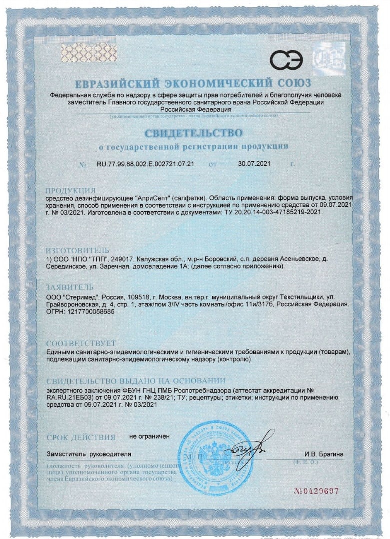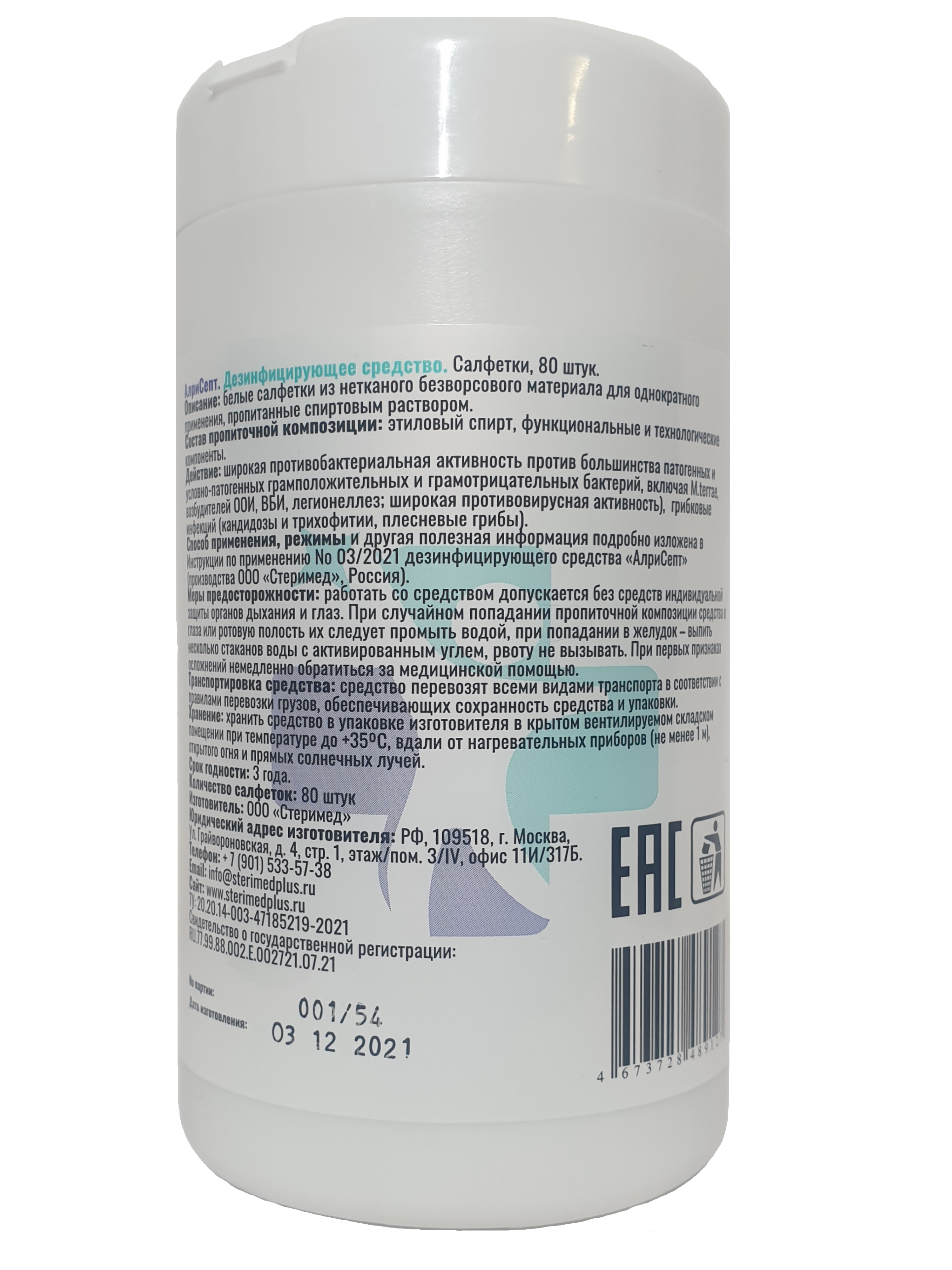 Дезинфицирующие спиртовые антисептические салфетки Алрисепт