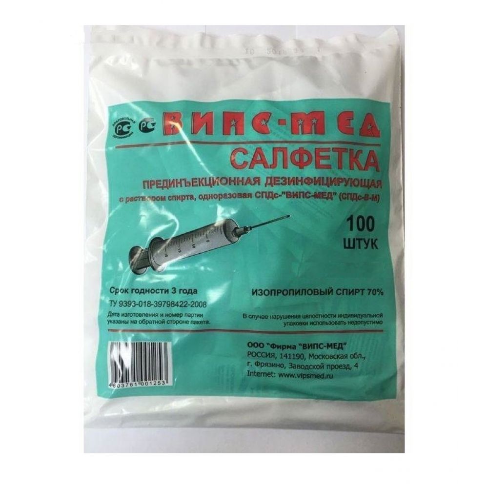 Салфетка стерильная дезинфицирующая спиртовая прединъекционная 60х30мм №100