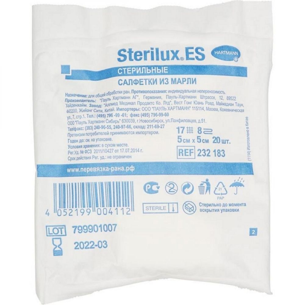 Стерилюкс ЕС салфетки стерильные 5х5см №20