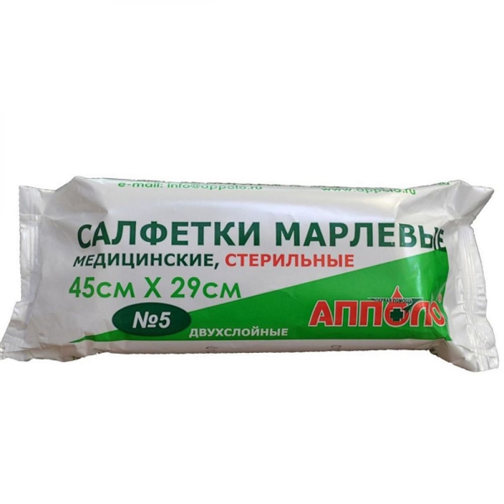 Апполо салфетка марлевая медицинская стерильная двухслойная 45х29см №5