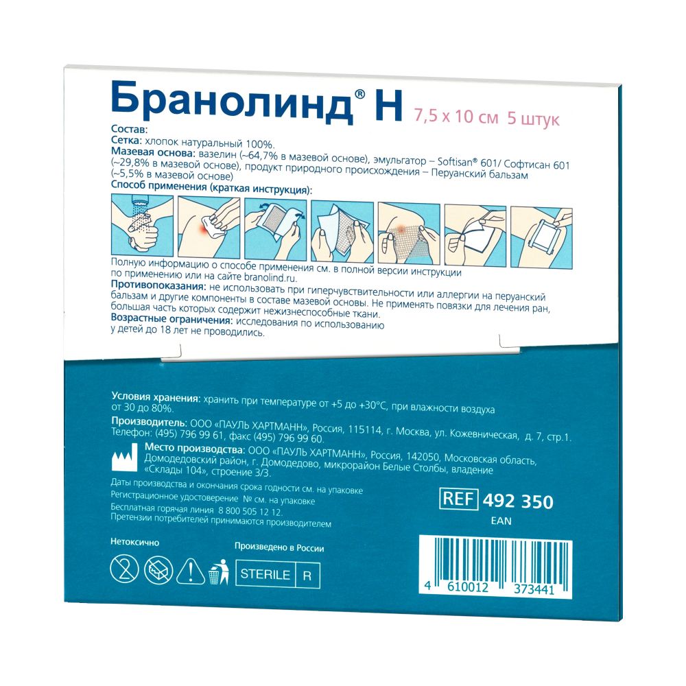 Бранолинд Н повязка мазевая стерильная с перуанским бальзамом 7,5смх10см №5