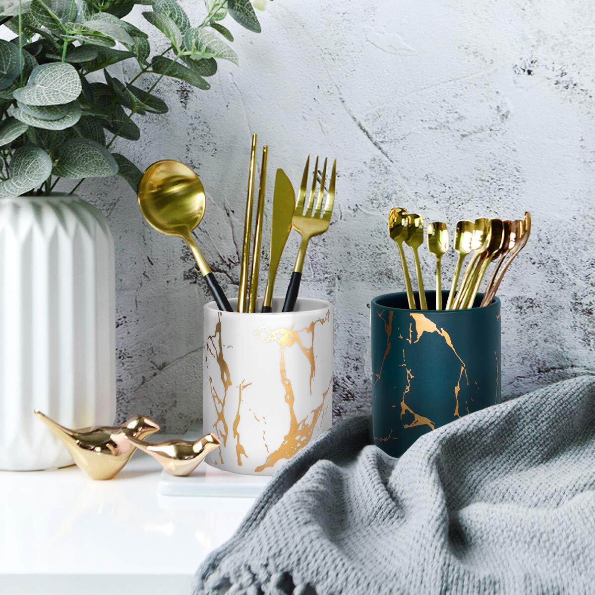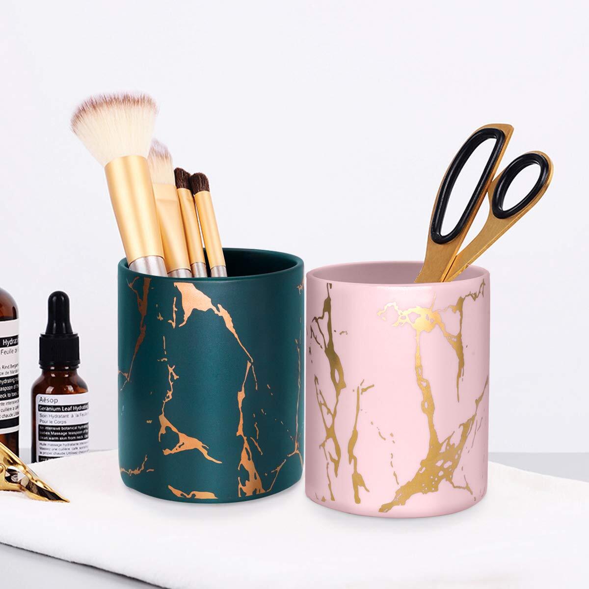 Держатель для ручек, подставка для стола Чашка для карандашей с мраморным узором Зеленый Золотой