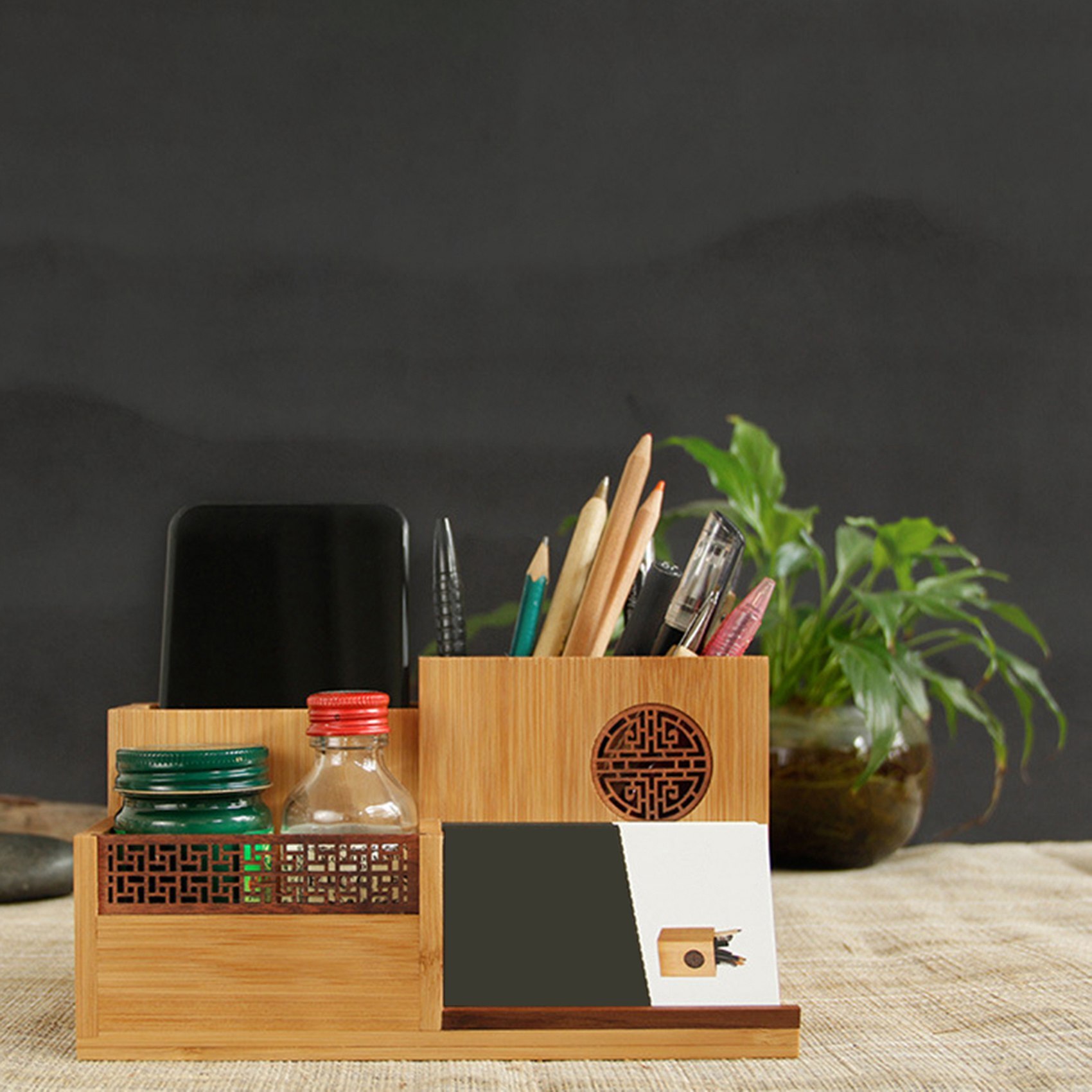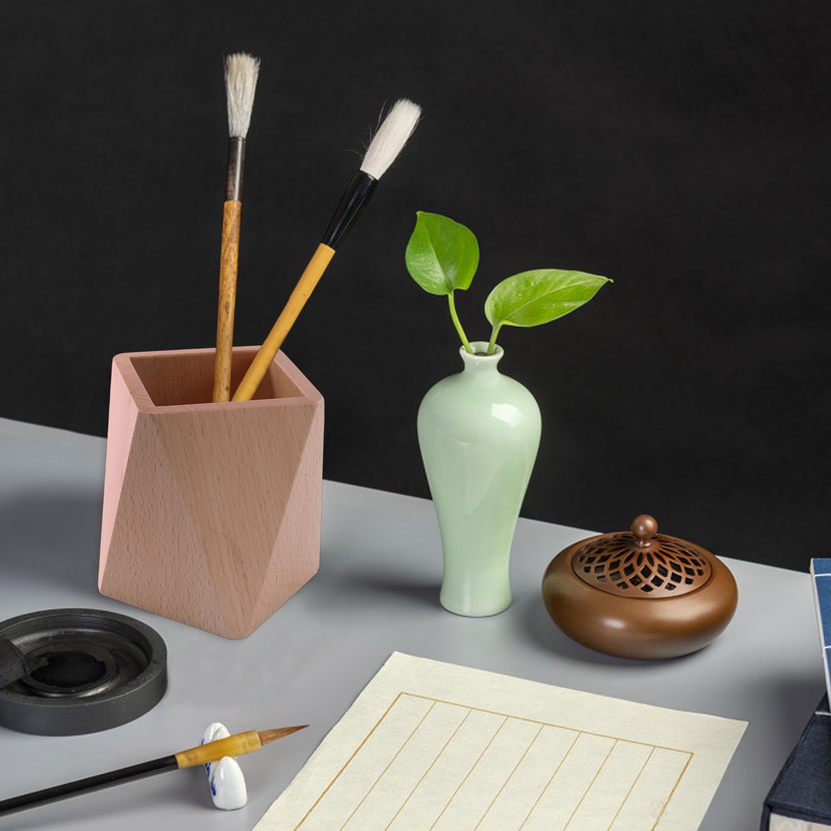 Держатель для ручки из бамбукового дерева Стеллаж для хранения геометрической формы (бук)