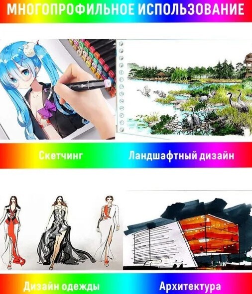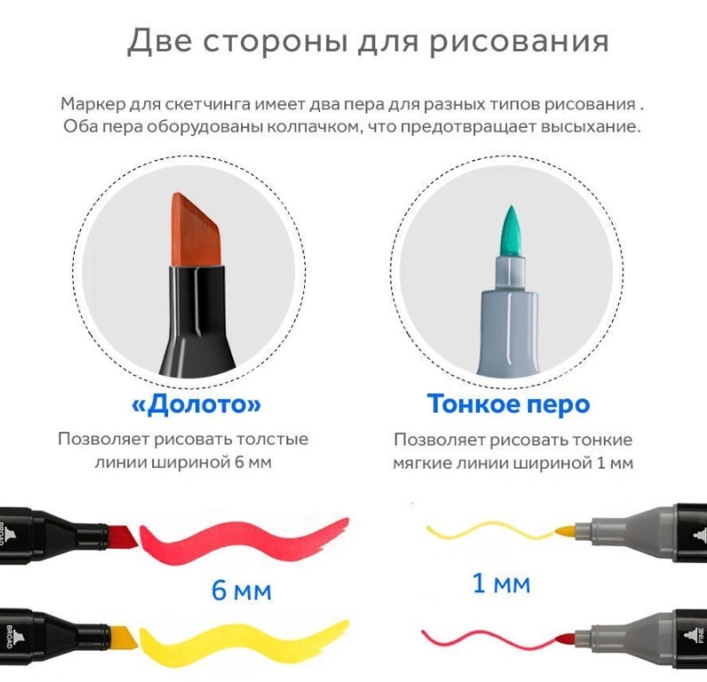 Маркеры для Скетчинга, Двухсторонние Маркеры для Рисования 48 Цветов