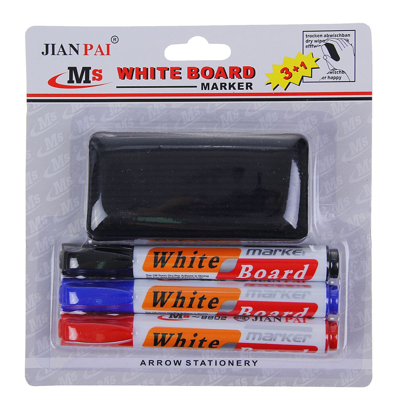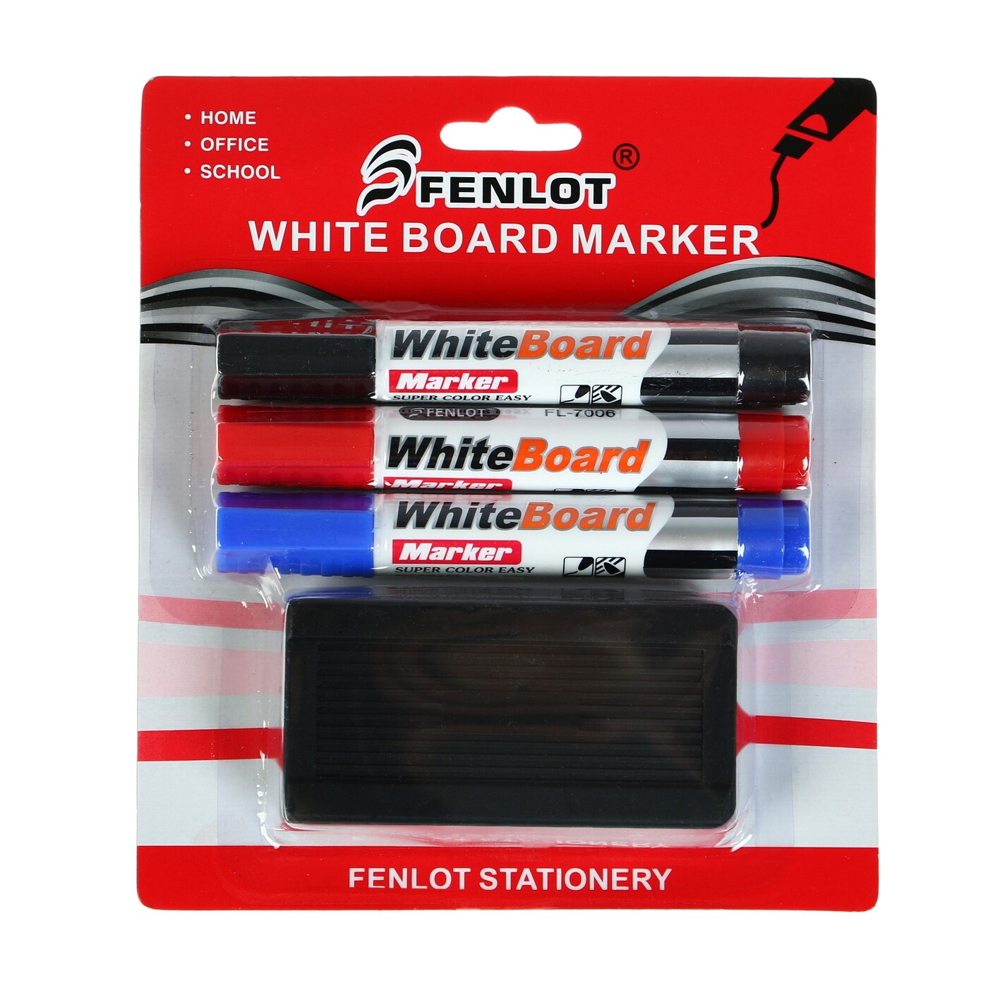Набор маркеров для доски, 3 цвета, 3 мм, с губкой, на блистере