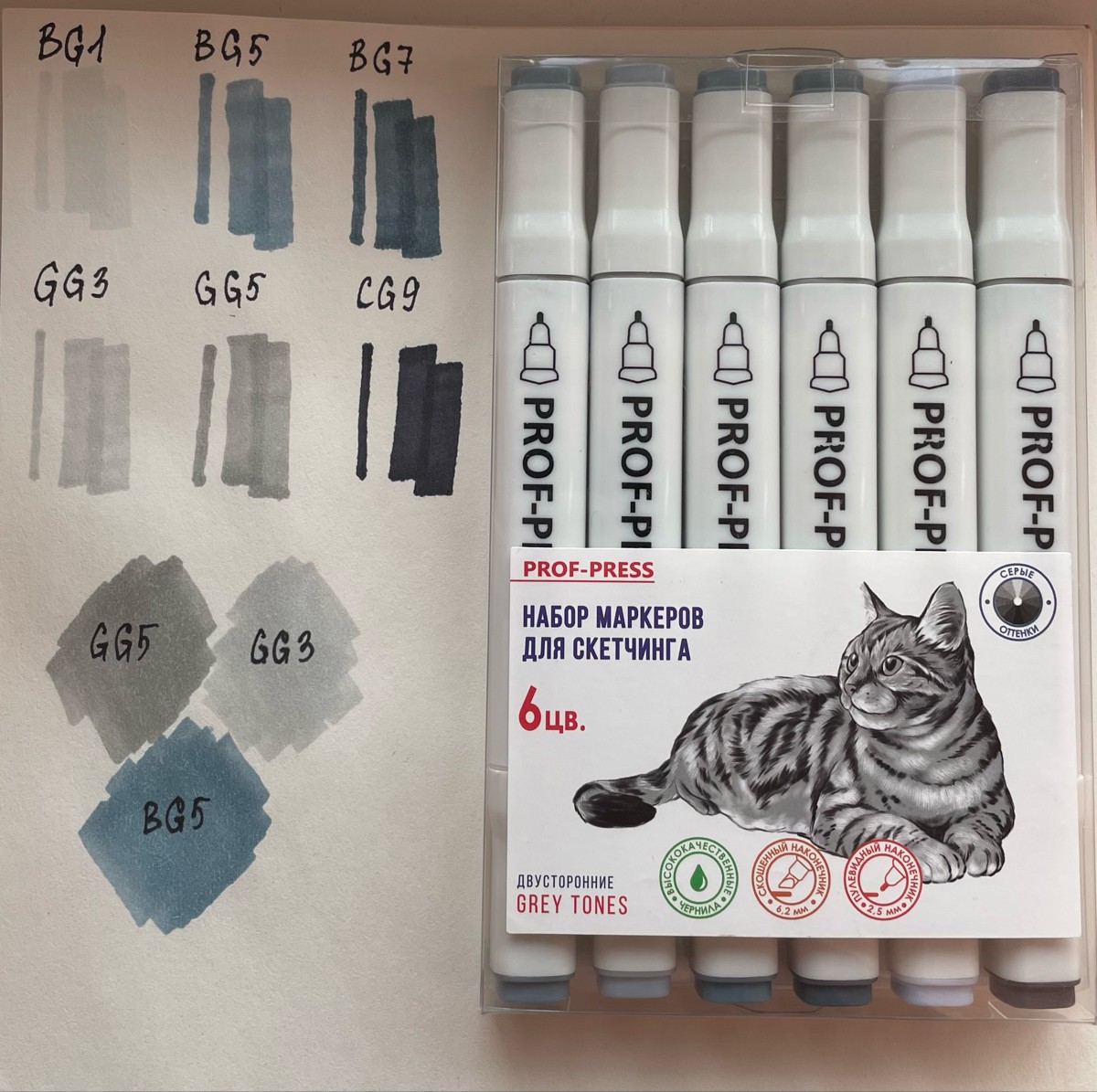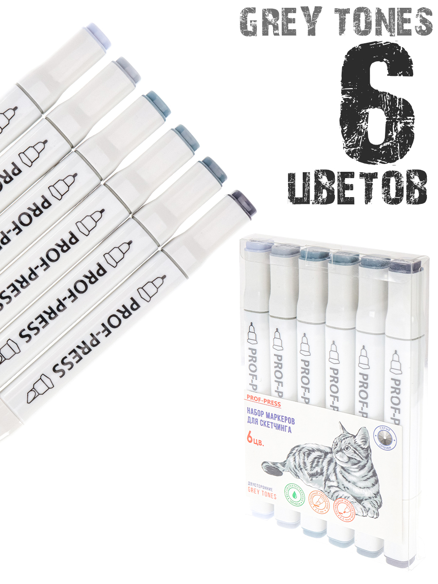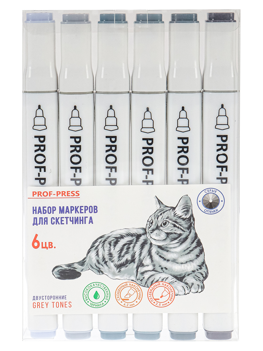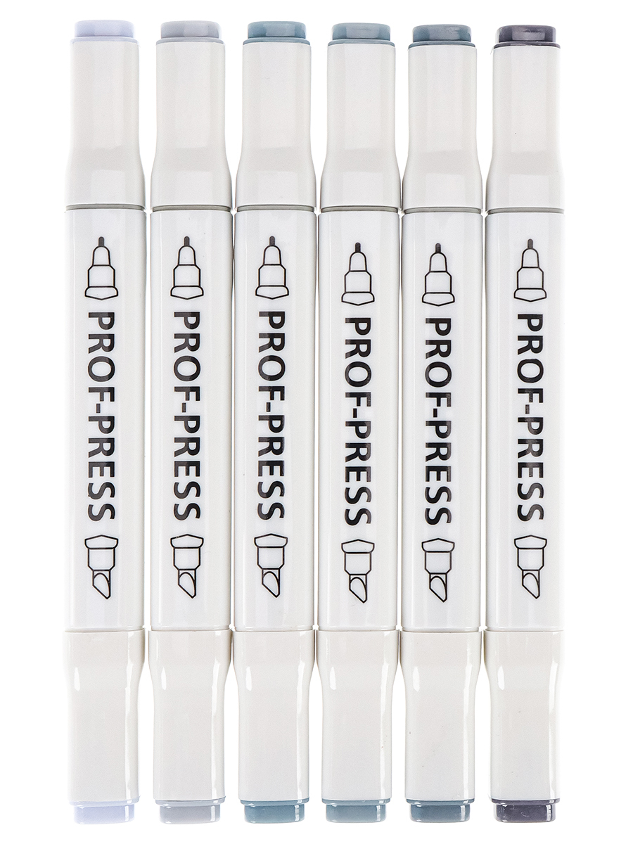 Набор маркеров, Prof-Press, GREY TONES, двустонний, для скетчинга ,6 штук
