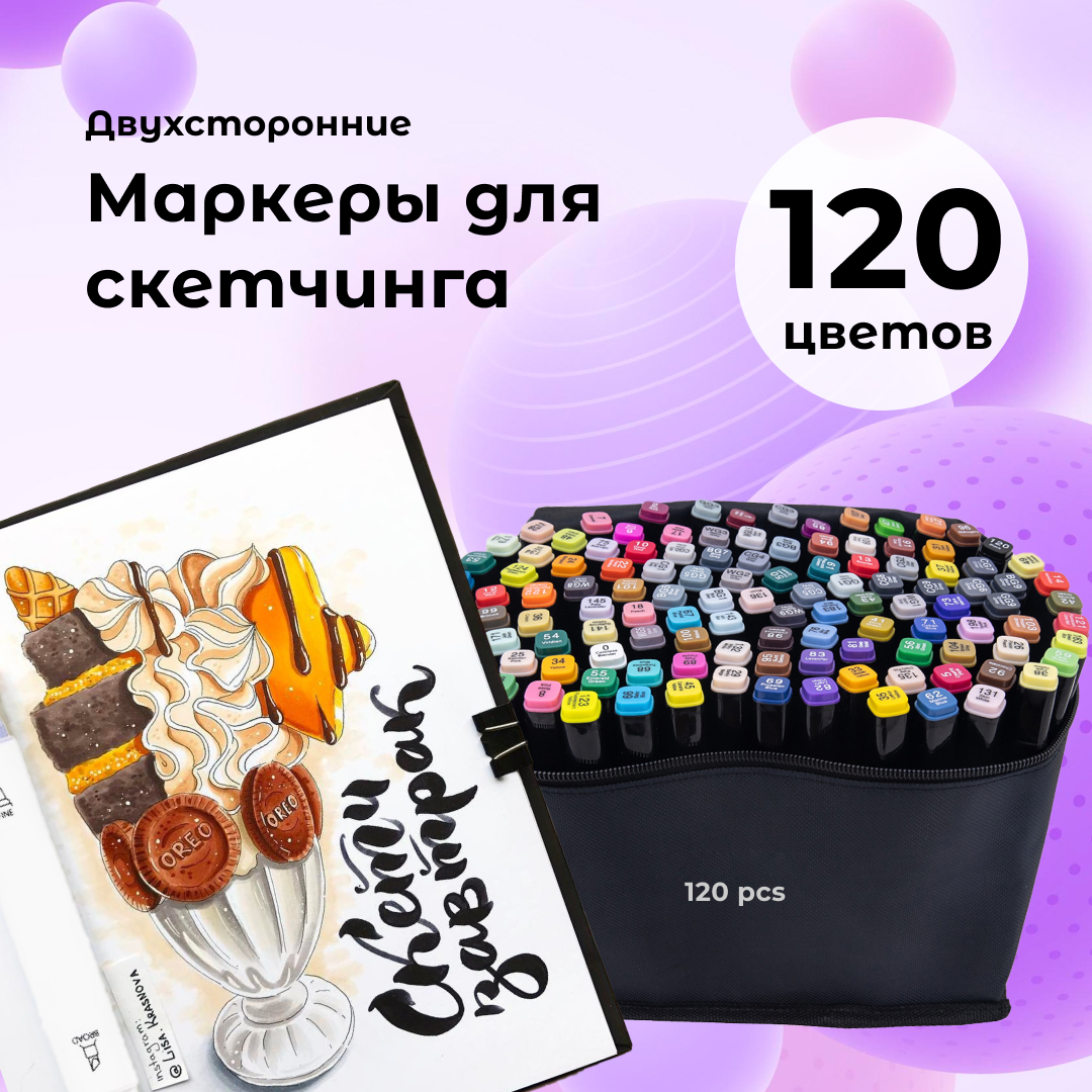 Фломастеры для скетчинга двусторонние профессиональные, в чехле (60 цветов), маркеры для скетчинга