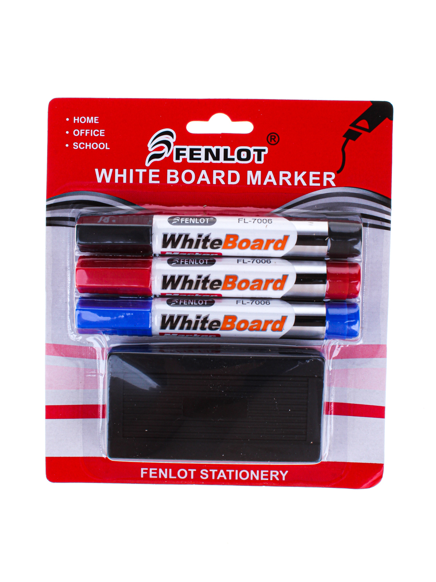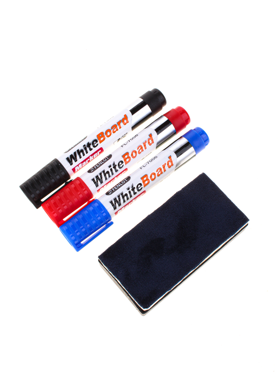 Набор маркеров для доски, 3 цвета, 3 мм, с губкой
