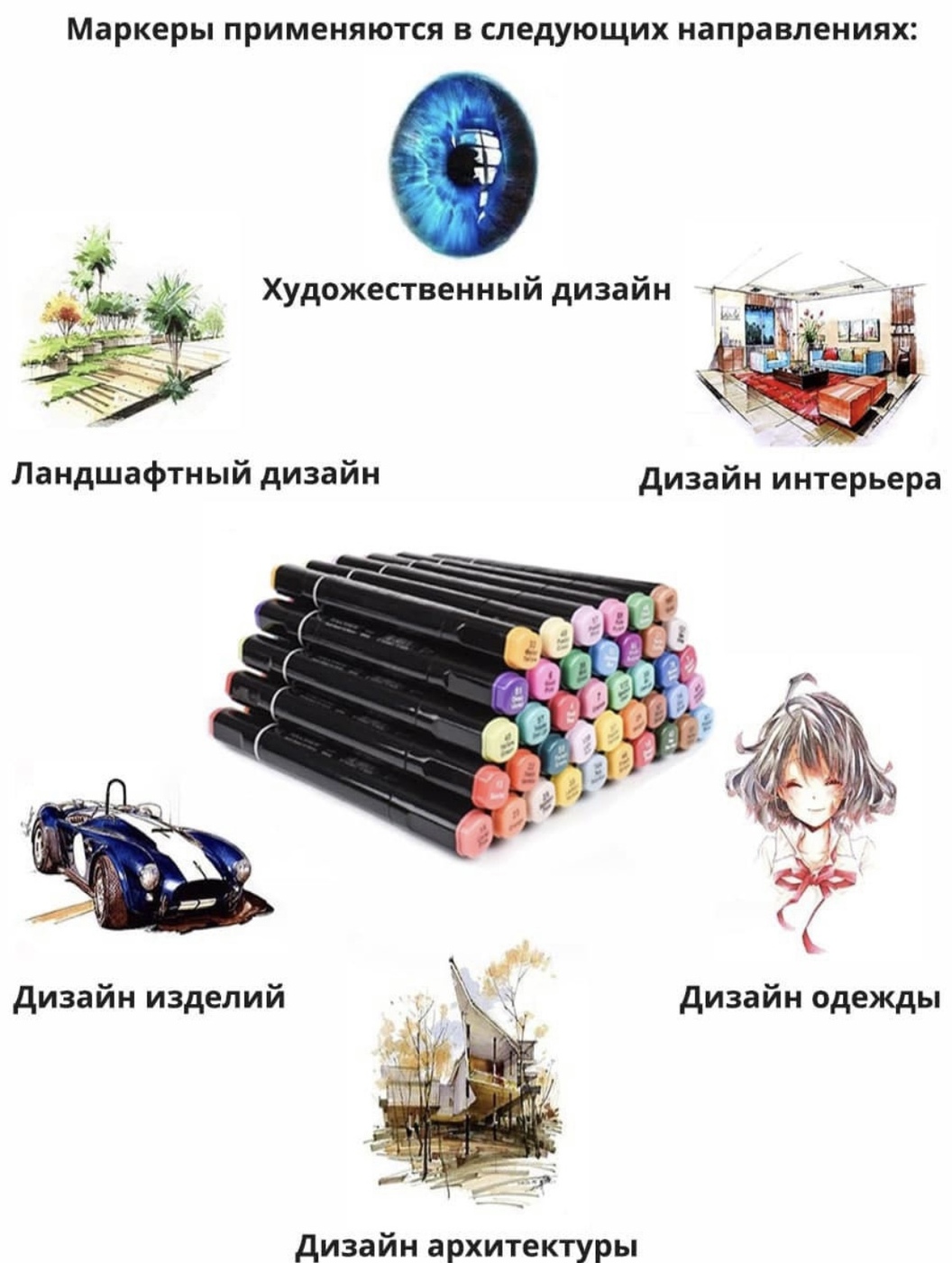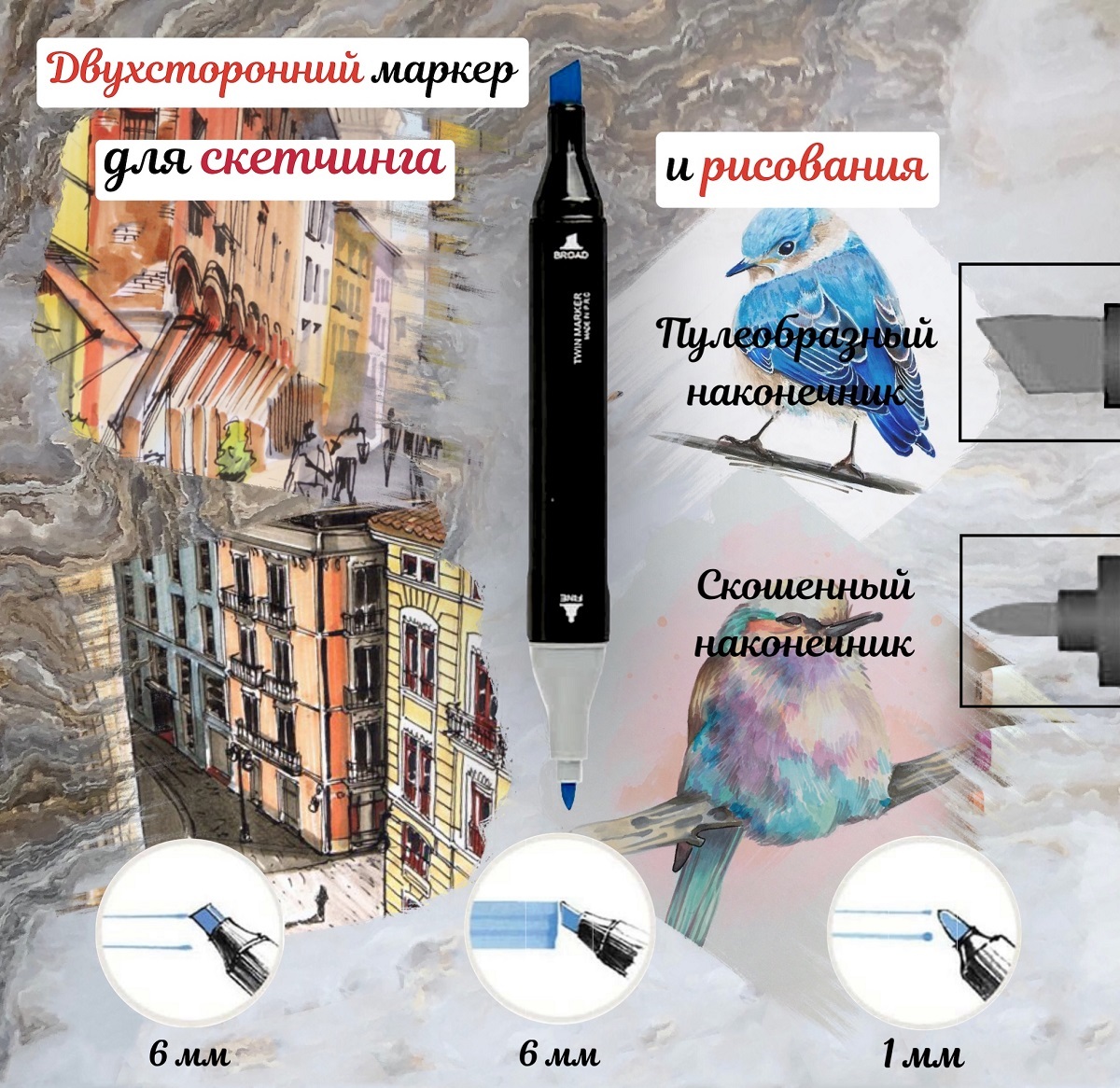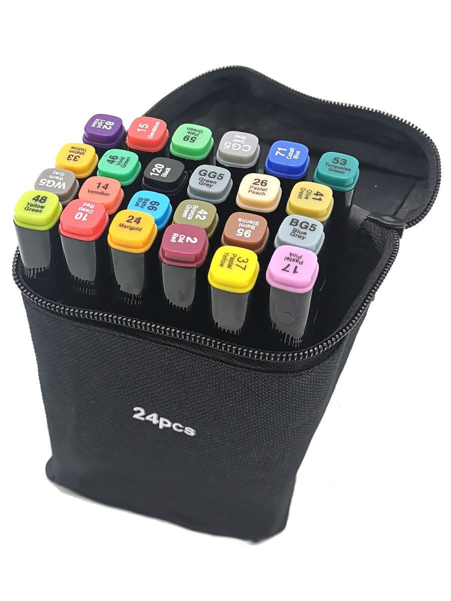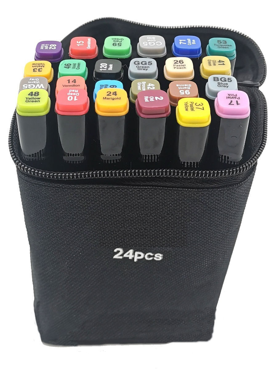 Маркеры для скетчинга 24 цвета художественные профессиональные, набор в тканевом чехле