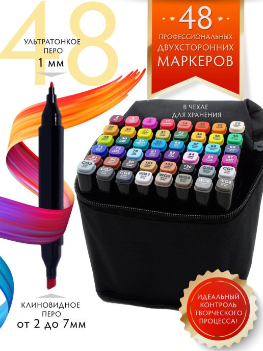 Набор маркеров для скетчинга и рисования, 48 цветов