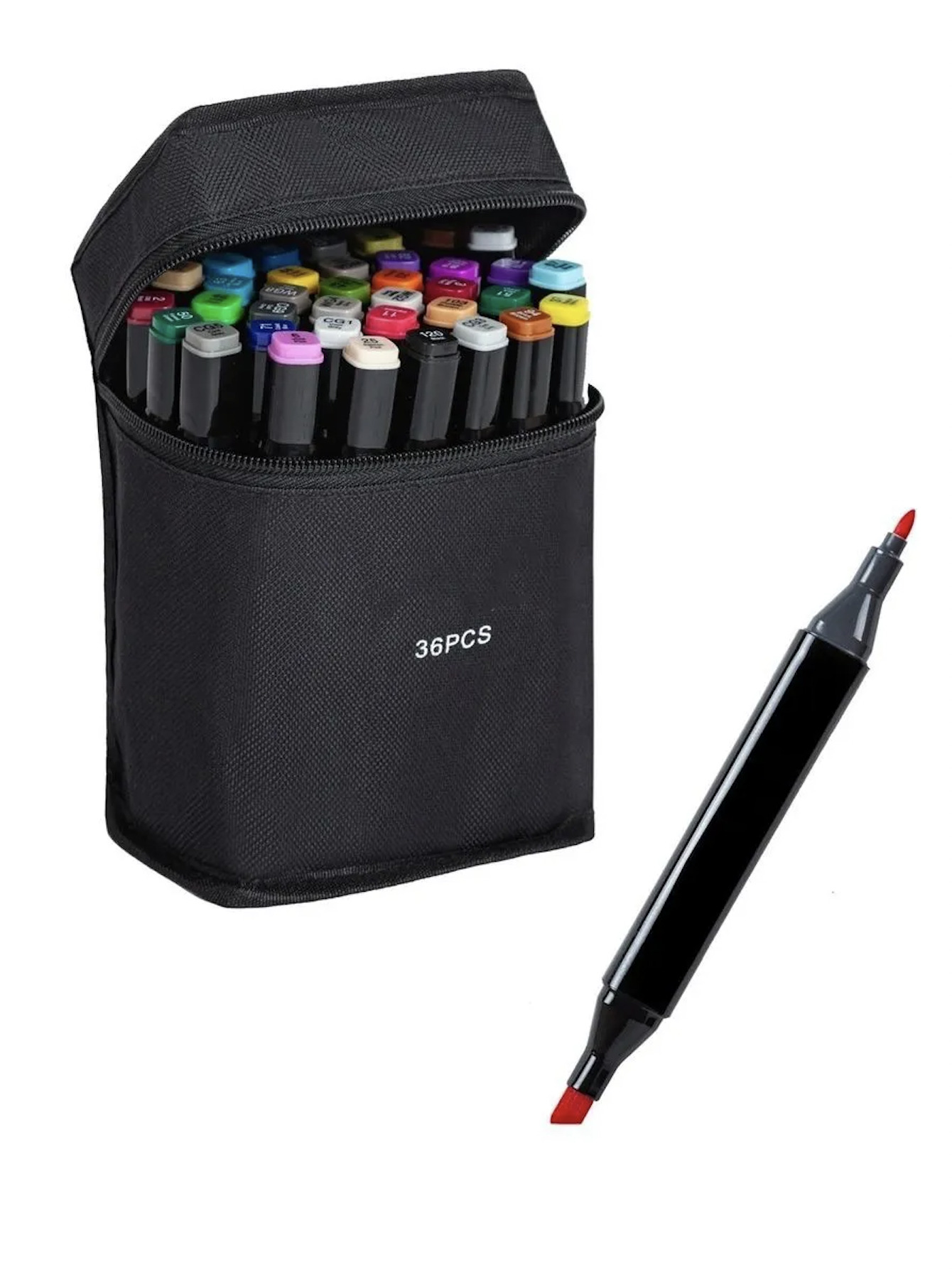 Маркеры для скетчинга двусторонние 36 цветов в сумке / фломастеры для скетчинга / скетч маркеры