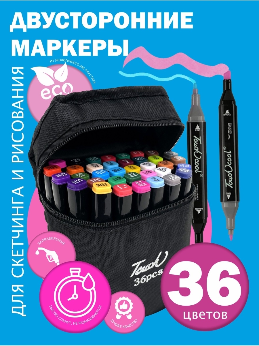 Набор двусторонних маркеров для скетчинга 30 цветов Анимация