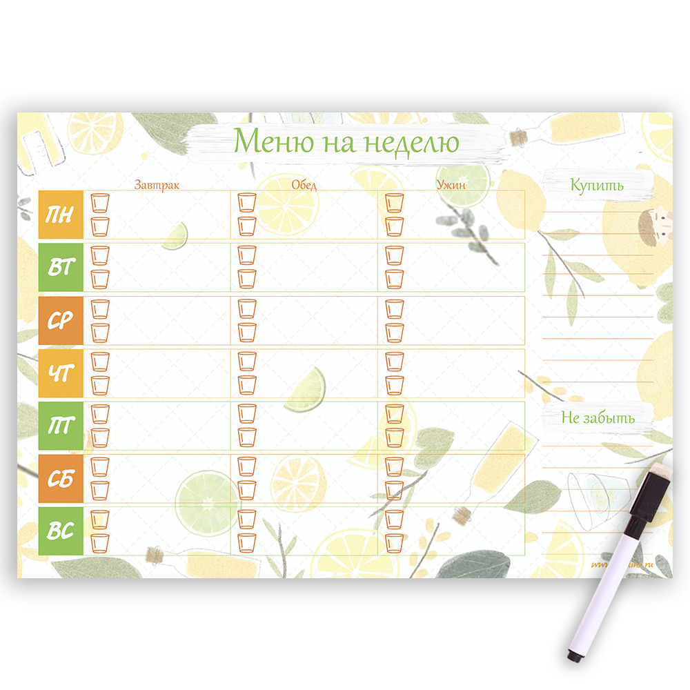 Планер магнитный, "Меню", на неделю, А4, маркер с магнитом и стирателем, горизонтальный