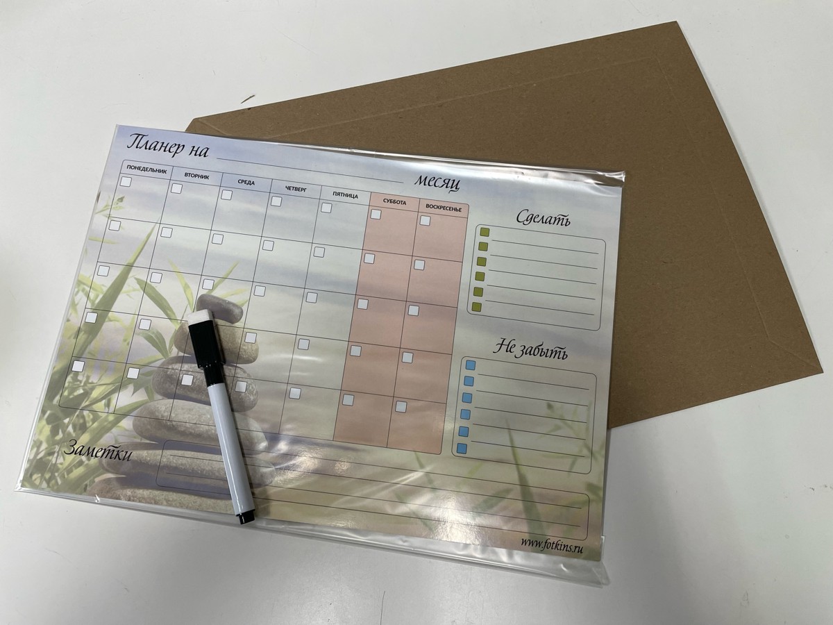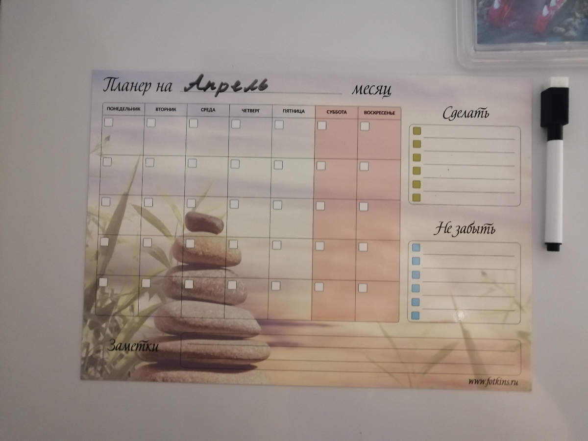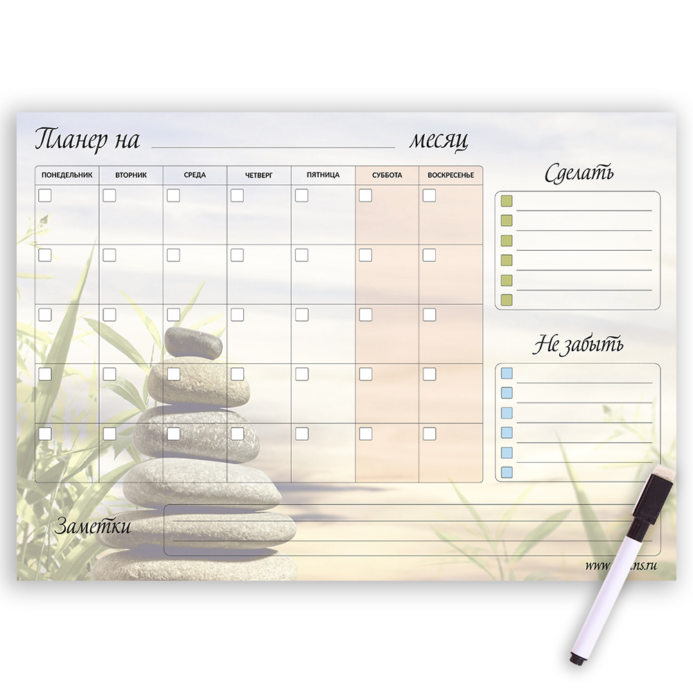 Планер магнитный, "Камни", на месяц с заметками, А4, маркер с магнитом и стирателем, горизонтальный