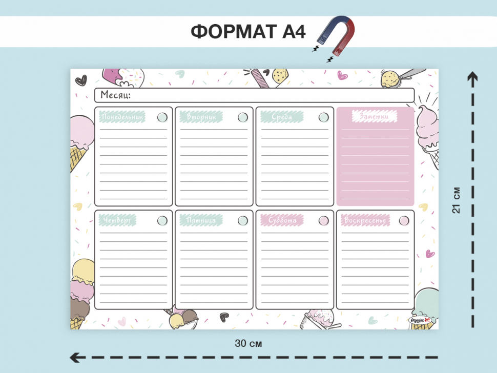 Магнитный планер на холодильник/планинг на месяц/магнитная доска/флипчарт/ежедневник для записей