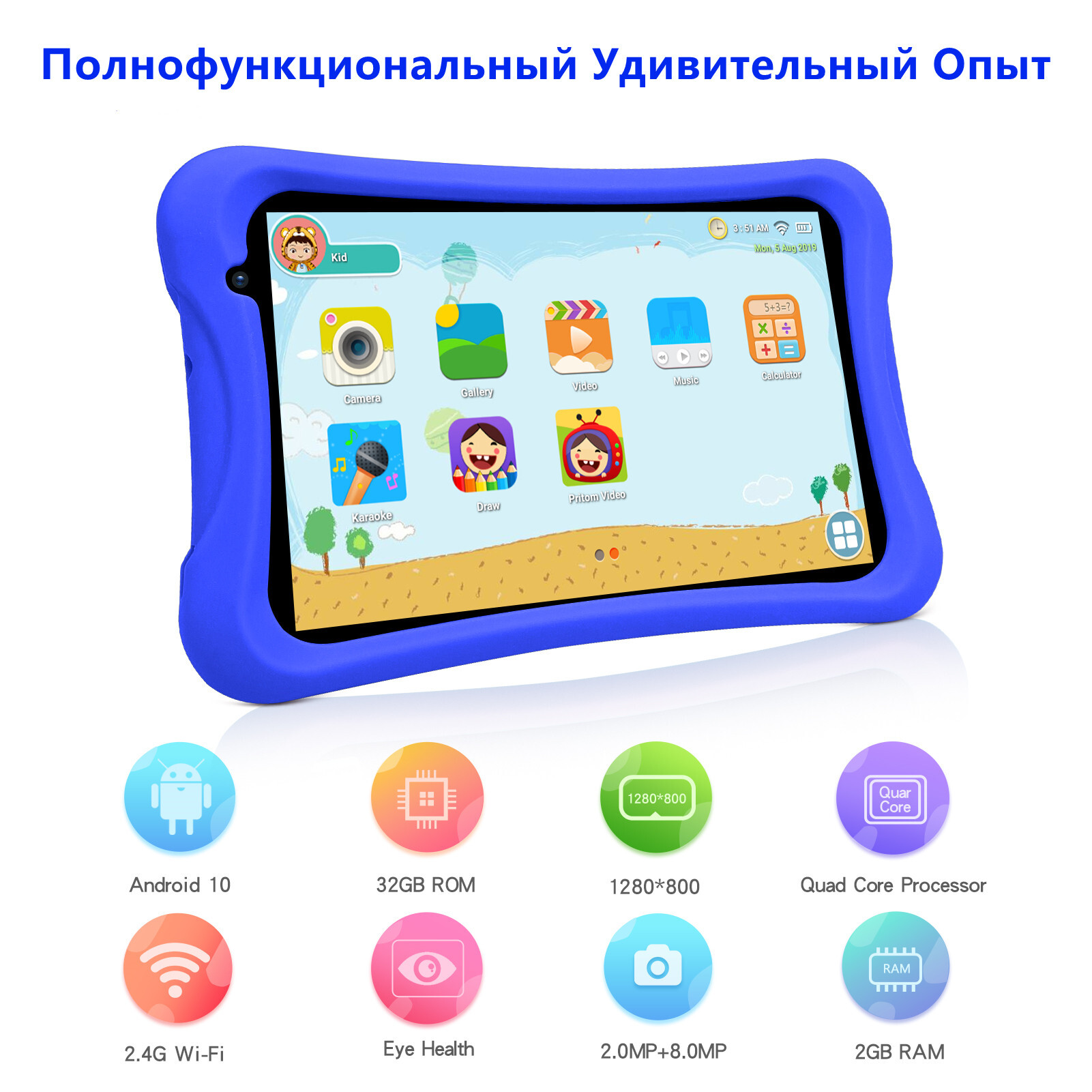 Планшет KJJKY7, 10.1", 128GB, голубой