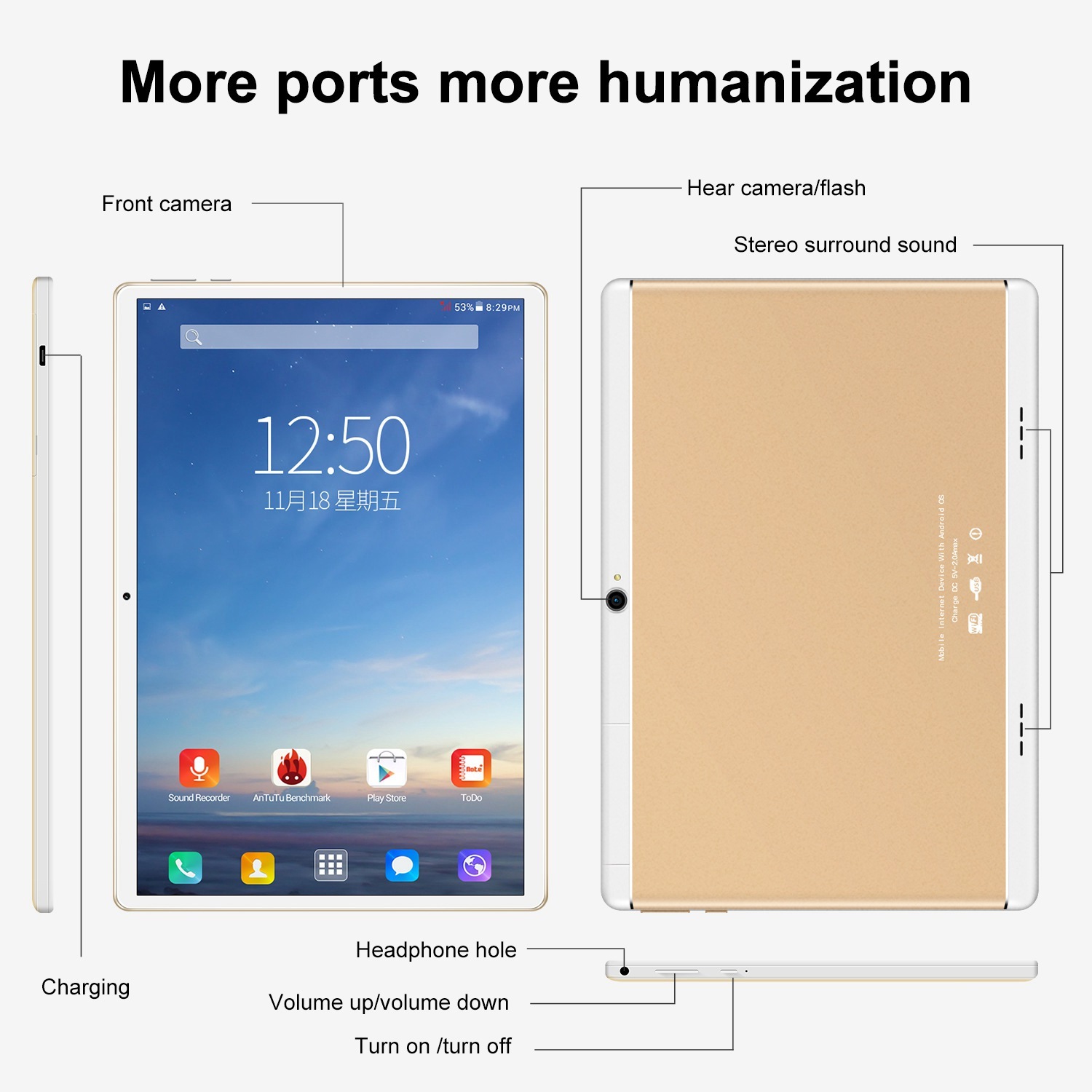 Планшет X102 10,1-дюймовый планшетный ПК с ОС Android Octa Core, черный