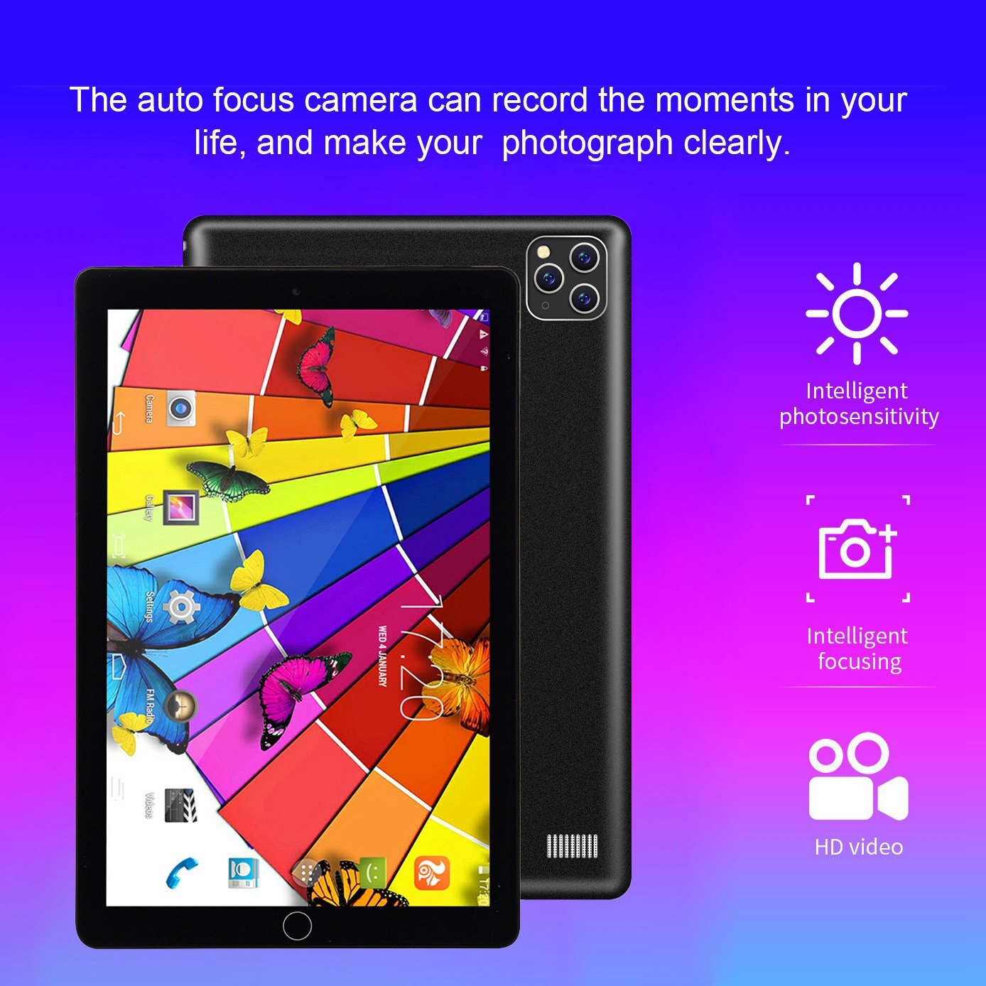 Планшет 10,1-дюймовый с экраном 2.5D Android Quad Core Dual Black US Plug, черный