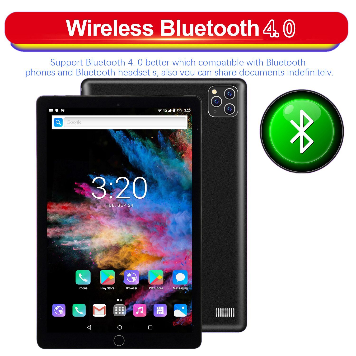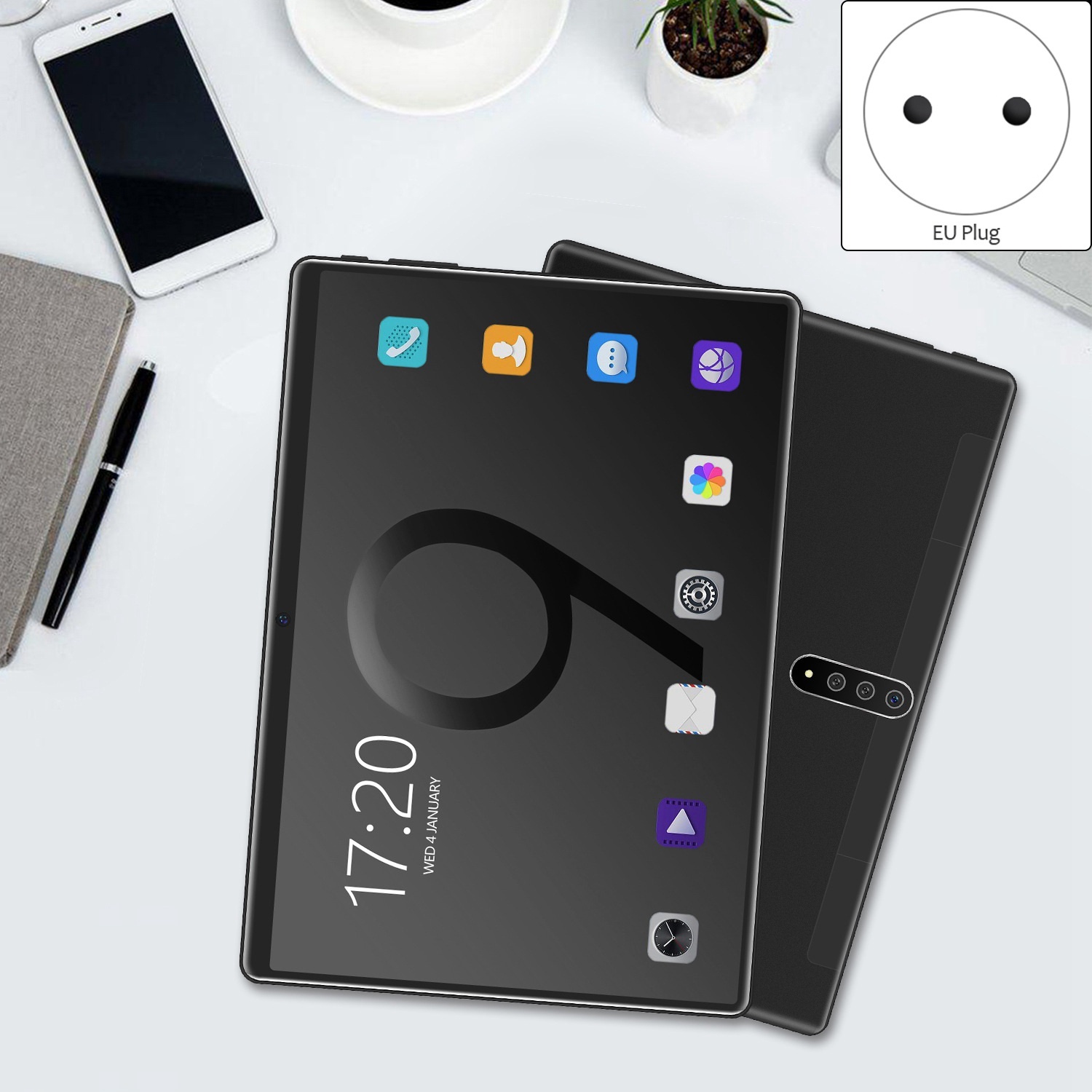 Планшет Для АндроидИгровой Wifi Bluetooth 10-дюймовый,Черный-EU Plug, черный