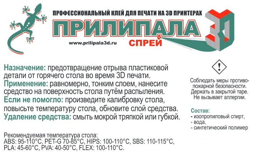 Клей для 3д печати Прилипала 3D спрей 100мл