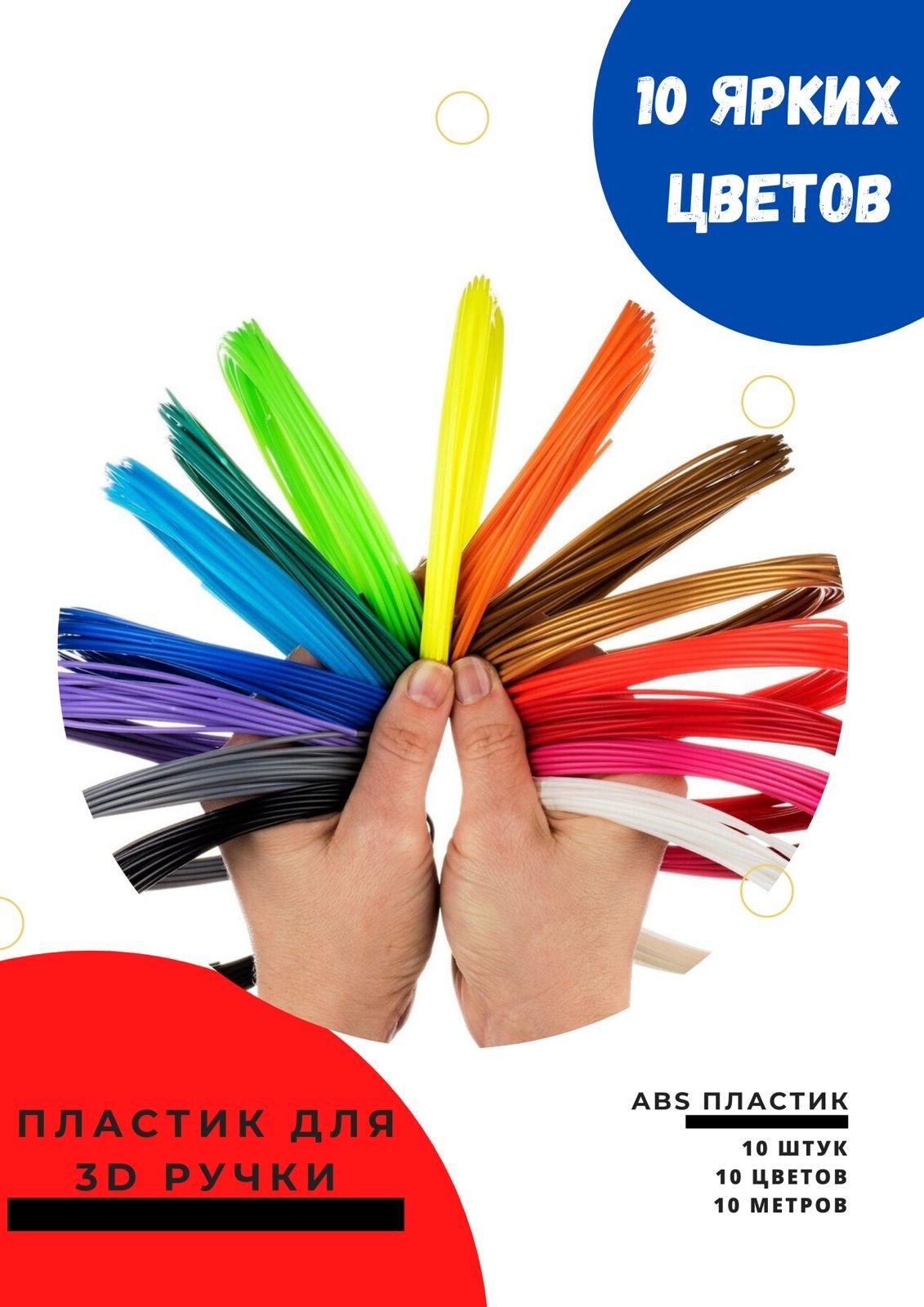 Пластик для 3D ручки,разноцветный,10 шт по 10 м