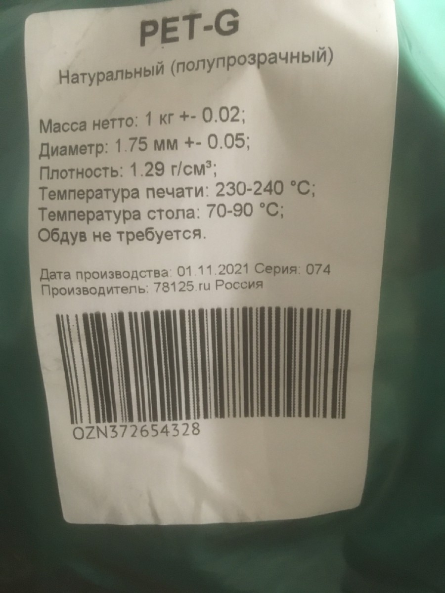 Пластик PETG 1 кг для 3D принтера 78125, натуральный прозрачный, моток 1.75