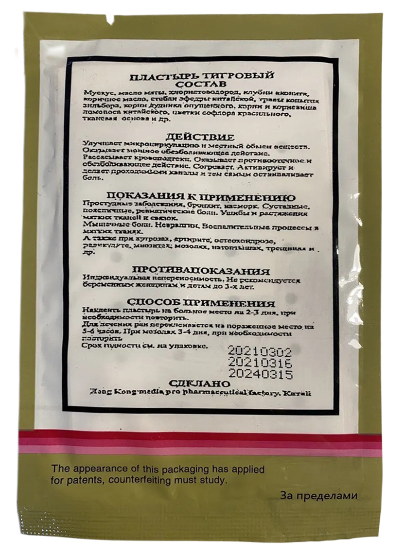 Пластырь обезболивающий противовоспалительный от боли Тигр 5шт.