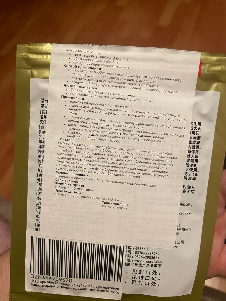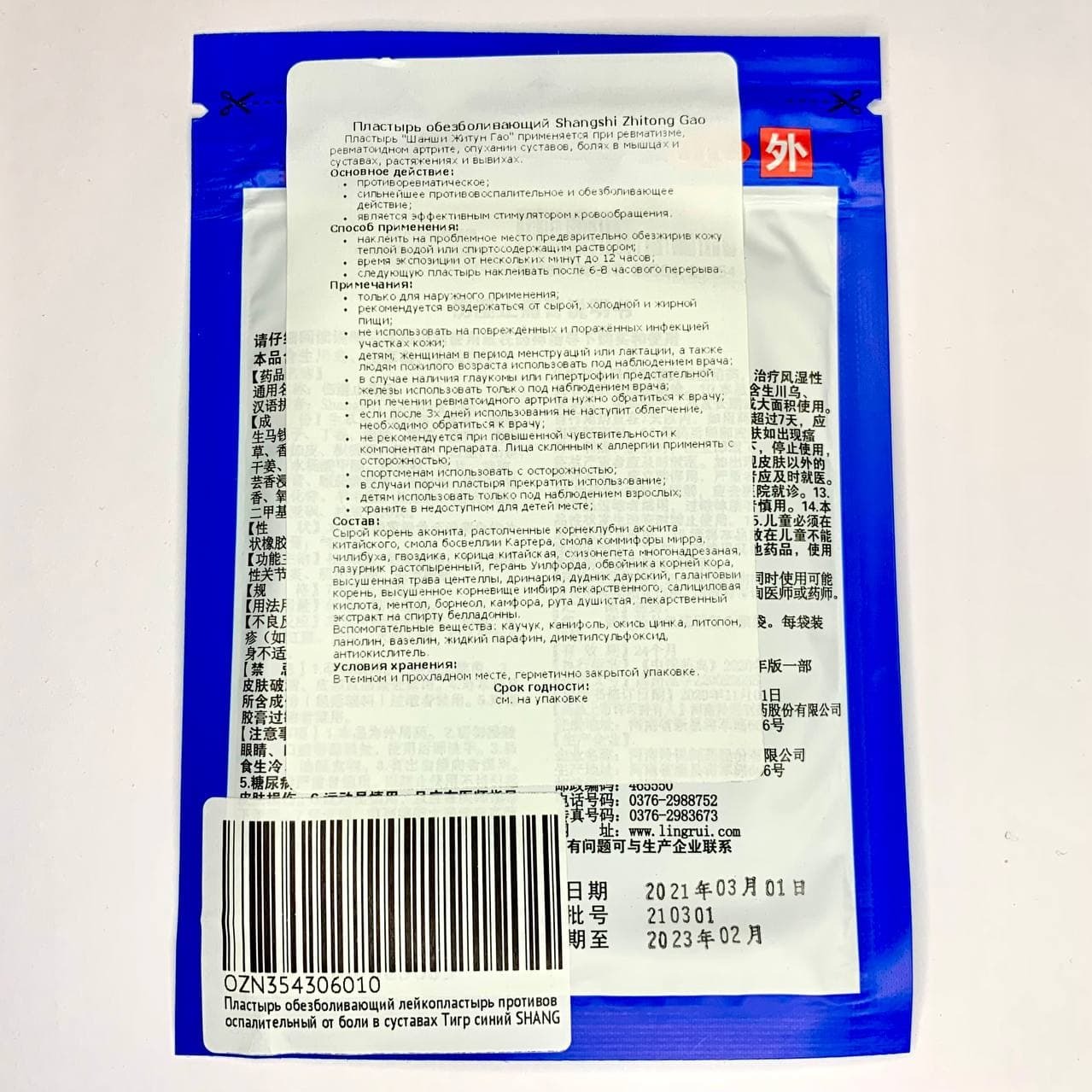 Пластырь обезболивающий Противовоспалительный от боли в суставах Тигр, 10 шт.
