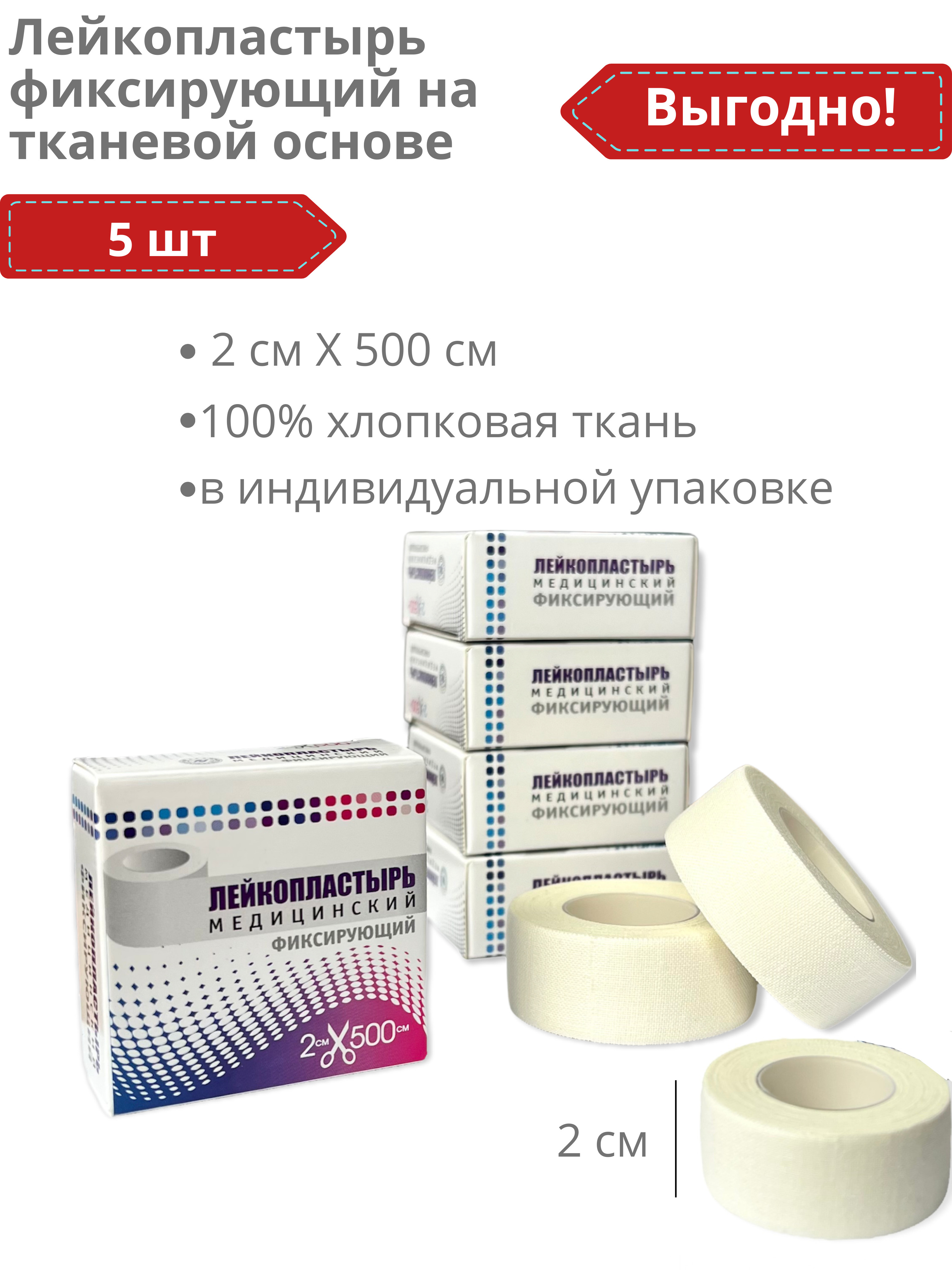 Лейкопластырь медицинский фиксирующий, рулонный, 5 шт.