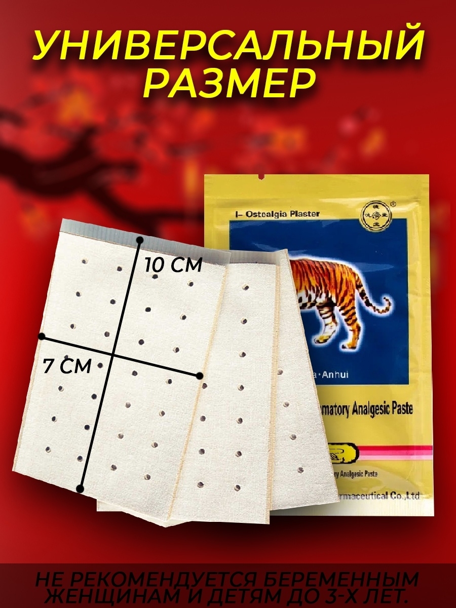 Лейкопластырь тигровый / болеутоляющий / противовоспалительный / согревающий , 4 шт.