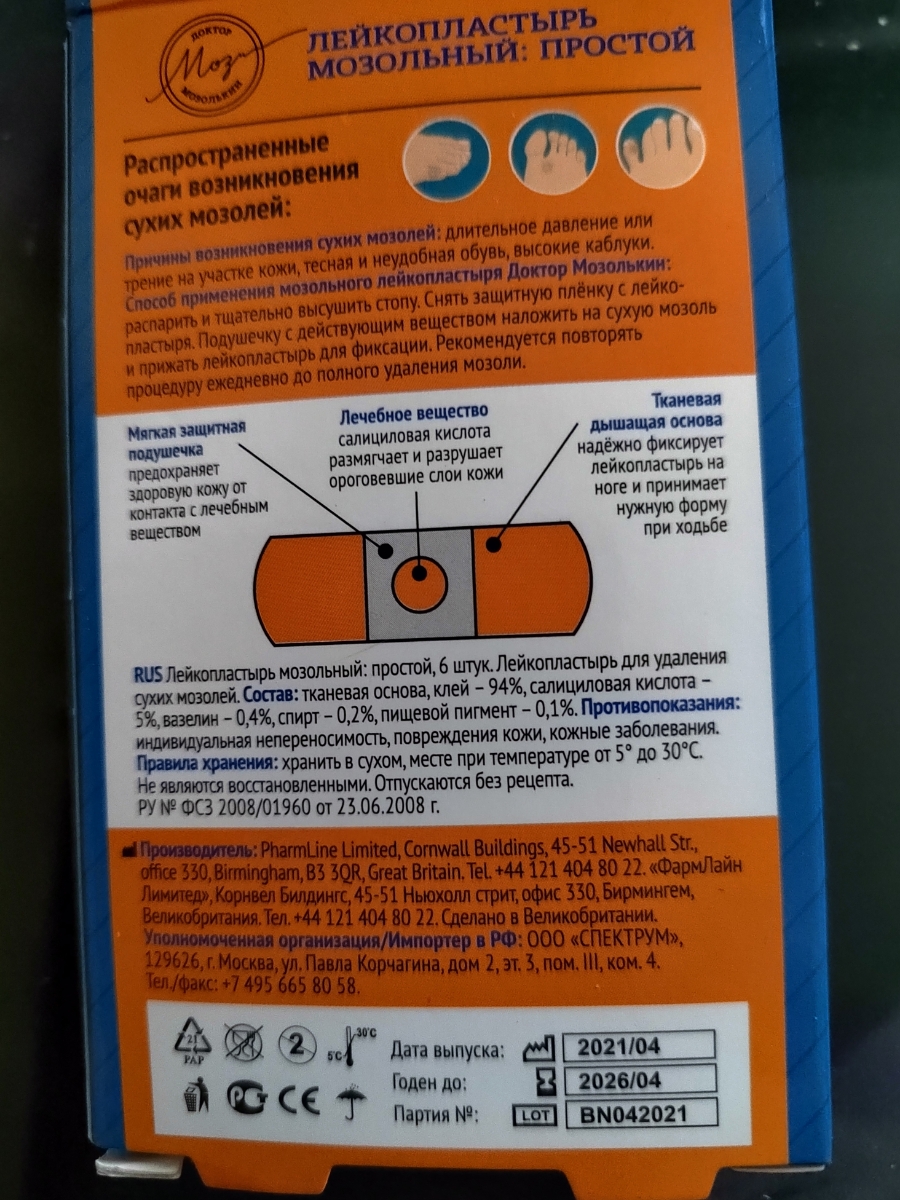 Пластырь мозольный Пластырь от натоптышей Пластырь от стержневой мозоли