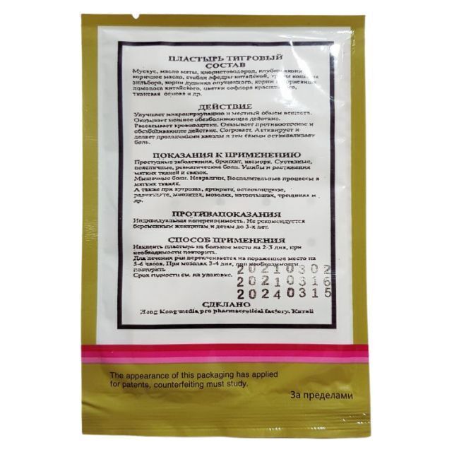 Лейкопластырь тигровый / болеутоляющий /обезболивающий / противовоспалительный /, 8 шт.