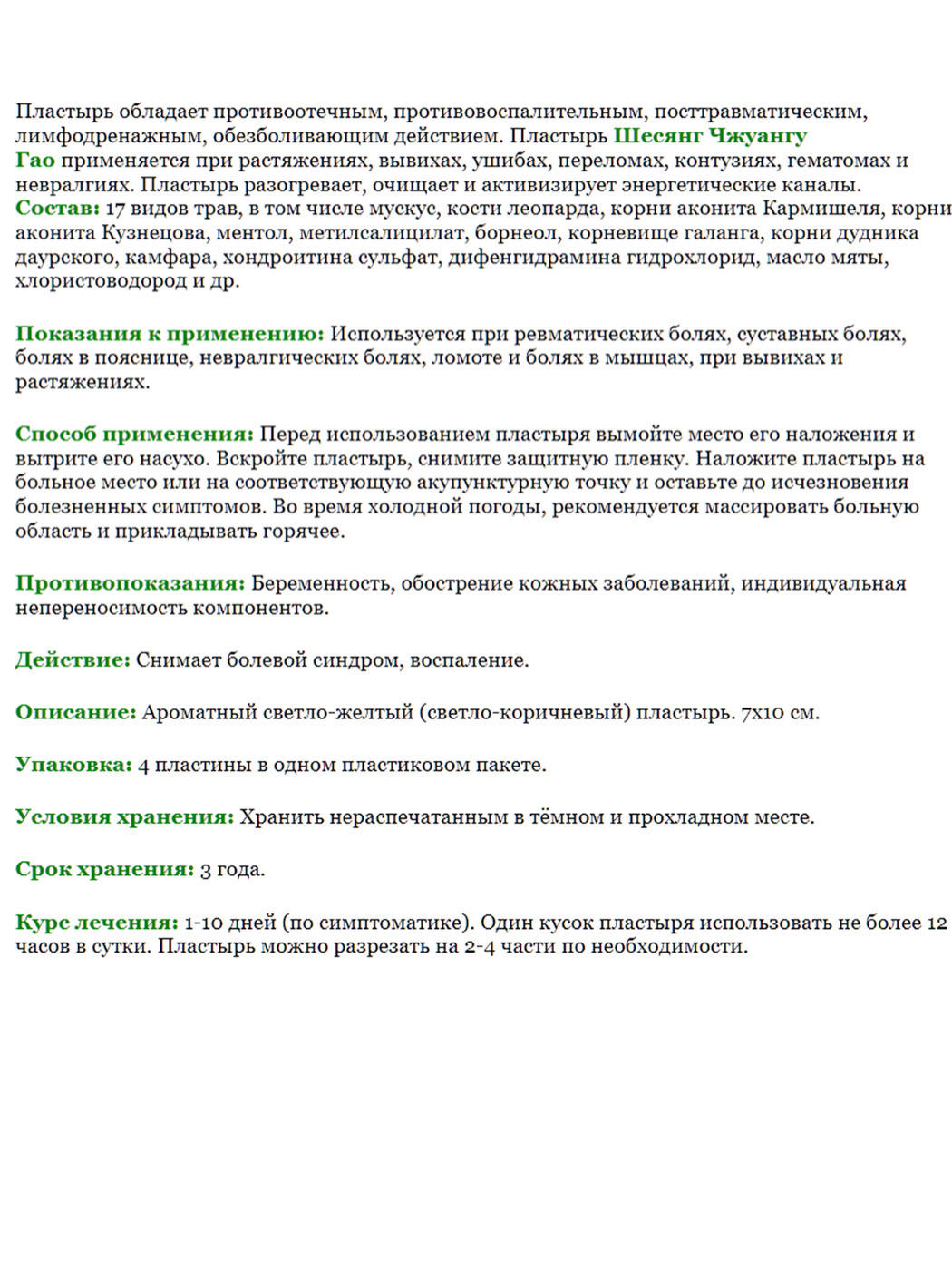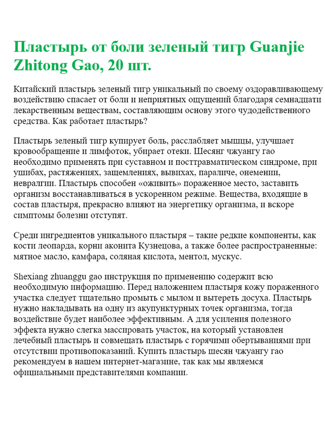 Пластырь обезболивающий Пластырь от боли зеленый Тигр Guanjie Zhitong Gao, 20 шт комплект