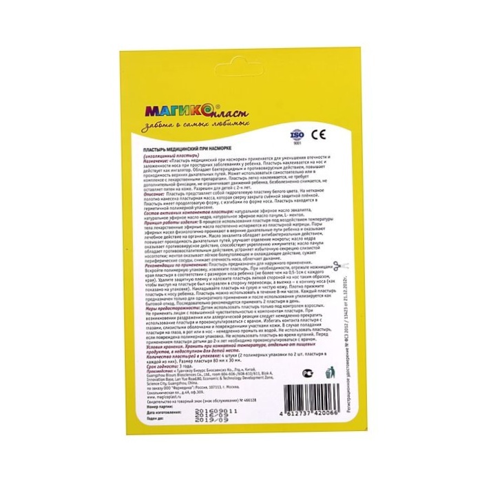 5 шт. Пластырь медицинский 'Магикопласт', при насморке, для детей с 2-х лет, 8х3 см, 4 шт
